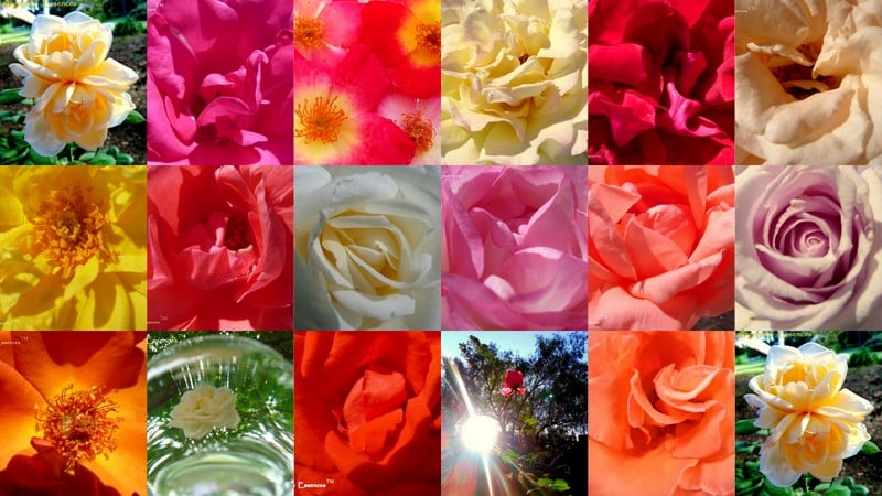 My ROSE Essence Blend consists of, from left to right, Double-Headed White Rose, Pink Rose, Wild Rose, Peace Rose, Red Rose, Champagne Rose, Yellow Rose, Rich Mousse Pink Rose, White Rose, Pink & White Rose, Soft Pink Rose, Lilac Rose, Orange Rose, Tall White Rose, Coral Rose, Tall Pink Rose and Salmon Rose.